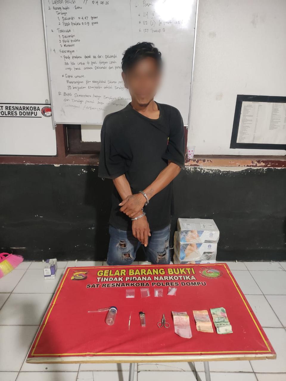 Tim Opsnal Satuan Reserse Narkoba (Satresnarkoba) Polres Dompu kembali menorehkan prestasi dalam pemberantasan narkotika di wilayah hukumnya. Pada hari Selasa, 2 September 2025, sekitar pukul 23.50 Wita, tim berhasil mengamankan seorang pria yang diduga kuat sebagai pelaku tindak pidana peredaran narkotika jenis sabu.