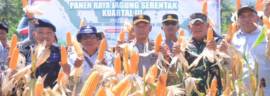 Sumbawa Barat – Polres Sumbawa Barat bersama unsur Forkopimda menghadiri dan mengawal kegiatan Panen Raya Jagung Serentak Kuartal III Tahun 2025 yang berlangsung di titik lahan pertanian di kecamatan jereweh Kabupaten Sumbawa Barat, Sabtu (27/09/2025).