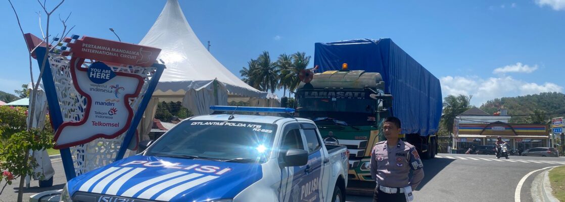 Mandalika — Personel Satgas 3 Subsatgas Kawal Operasi Mandalika Rinjani 2025, dari Direktorat Lalu Lintas (Ditlantas) Polda NTB, Jumat (26/9/2025) sekitar pukul 11.00 Wita, menjalankan tugas penting guna pengamanan perhelatan MotoGP Mandalika 2025. Tim melakukan pengawalan dan pengamanan logistik MotoGP, dari terminal bongkar-muat barang Pelabuhan Lembar, Kabupaten Lombok Barat, menuju Pertamina Mandalika International Circuit di Kuta, Lombok Tengah.