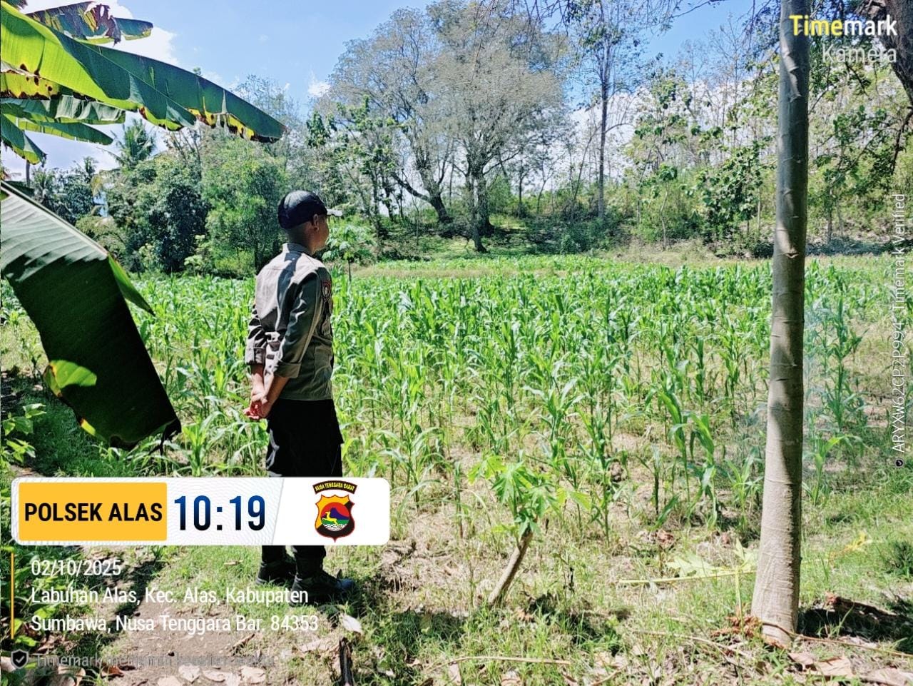 Sumbawa Besar, NTB — Kepolisian Resor (Polres) Sumbawa terus menjalankan program dukungan terhadap ketahanan pangan nasional di wilayah hukumnya. Hal ini diwujudkan melalui kegiatan monitoring dan imbauan yang dilakukan oleh Bhabinkamtibmas. Pada Kamis, 2 Oktober 2025, pukul 10.15 WITA, Bhabinkamtibmas Desa Labuhan Alas, melaksanakan sambang sekaligus pengecekan langsung di lokasi sawah milik warga di Desa Labuhan Alas, Kecamatan Alas, Kabupaten Sumbawa. Pemilik lahan, Bapak A, menjadi salah satu contoh warga yang berupaya memanfaatkan lahannya untuk ketahanan pangan. Kegiatan pengecekan ini dilakukan sebagai bentuk dukungan nyata Polri terhadap upaya masyarakat dalam memenuhi kebutuhan pangan mandiri.