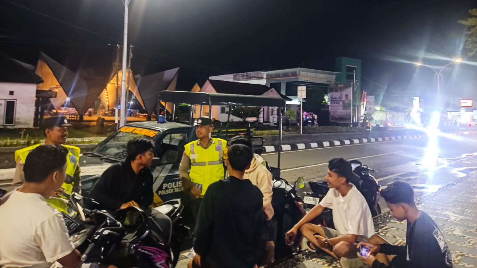 Sumbawa Barat – Dalam rangka mendukung Program Presisi Kapolri terkait Penguatan Pemeliharaan Keamanan dan Ketertiban Masyarakat (Harkamtibmas), Regu III Piket Polsek Taliwang melaksanakan kegiatan patroli dialogis di kawasan Alun-alun Taliwang pada Rabu malam, 15 Oktober 2025, mulai pukul 21.00 Wita hingga selesai.