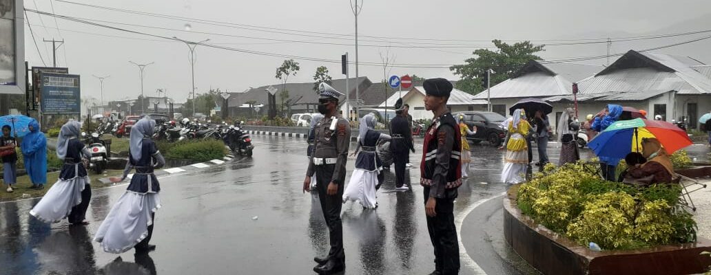 “Meskipun hujan turun, personel kami tetap siap di lapangan untuk memberikan rasa aman dan memastikan kegiatan berjalan tertib dan lancar. Antusiasme masyarakat menjadi semangat bagi anggota untuk tetap bertugas dengan penuh tanggung jawab,” ujarnya.