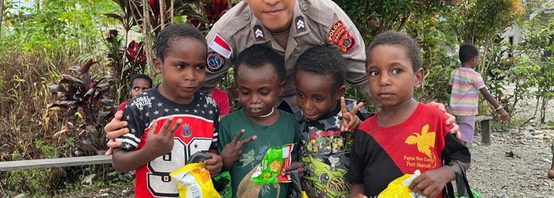 Dalam kegiatan tersebut, personel Satgas Ops Damai Cartenz tampak berbaur dengan masyarakat dan membagikan makanan ringan kepada anak-anak di sekitar lokasi. Suasana penuh keceriaan terlihat ketika anak-anak antusias menyambut kehadiran personel kepolisian dengan tawa dan senyum.