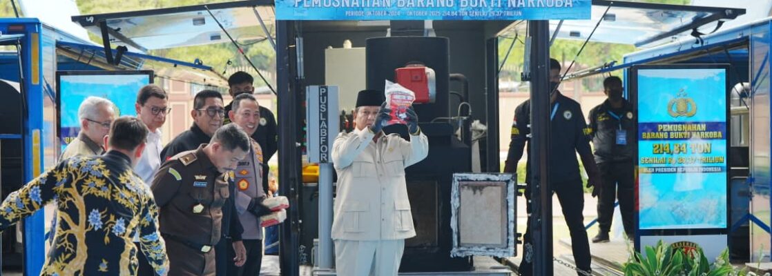 Pemusnahan barang bukti narkoba sebanyak 214,84 ton tersebut dihadiri langsung oleh Presiden Prabowo Subianto sekaligus memimpin pemusnahan barang haram tersebut di Lapangan Bhayangkara, Jakarta Selatan, Rabu (29/10/2025).