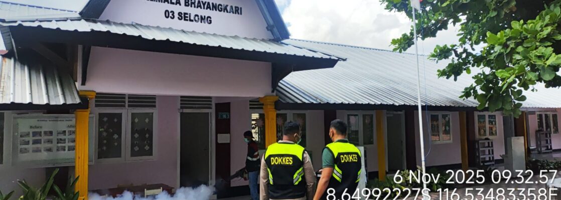 Mataram, NTB – Dalam upaya menjaga kesehatan lingkungan dan mencegah penyebaran penyakit Demam Berdarah Dengue (DBD), Bidang Kedokteran dan Kesehatan (Biddokkes) Polda NTB melaksanakan kegiatan pengasapan (fogging) di Mapolres Lombok Timur, Polsek Labuhan Haji, dan Polsek Selong, Kamis (06/11/2025).