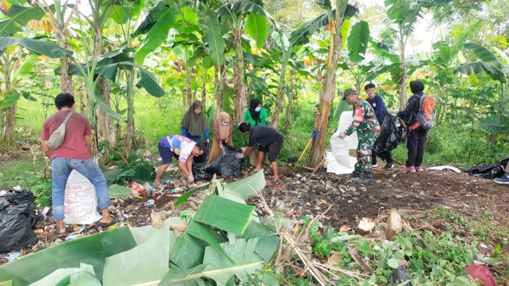 Lombok Barat – Udara pagi Dusun Ireng Daye, Desa Jati Sela, Kecamatan Gunung Sari, Lombok Barat, Nusa Tenggara Barat (NTB) terasa berbeda. Di antara rimbun pepohonan pisang dan semak hijau, sejumlah anggota Komando Rayon Militer (Koramil) 1606-07/Gunungsari bersama Bintara Pembina Desa (Babinsa) Desa Jatisela, anggota Yayasan Unggul Alam Lestari (YUNALEST), serta unsur pemerintah dan masyarakat bergotong royong membersihkan tumpukan sampah yang menumpuk di sepanjang Jalan Ijo Ireng, Minggu (16/11/2025).