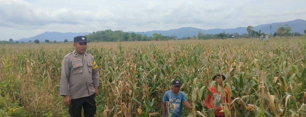 Bhabinkamtibmas Desa Mbawi Polsek Dompu, Aipda Muztahidin, melaksanakan pemantauan panen jagung milik Pak Zuharis di So Tunggu, Desa Mbawi, Kecamatan Dompu, pada Sabtu (15/11/2025) pukul 10.30 Wita.