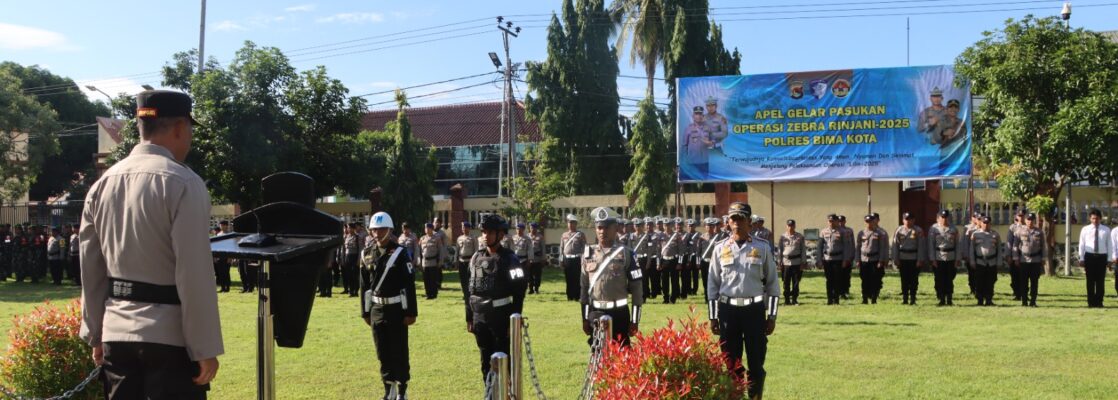 Kota Bima, NTB (17 November 2025) – Operasi Zebra Rinjani 2025 resmi digelar serentak di seluruh Indonesia mulai hari ini. Polres Bima Kota melaksanakan Apel Gelar Pasukan pada Senin, 17 November 2025, pukul 08.00 Wita, bertempat di Lapangan Presisi Polres Bima Kota. Kegiatan tersebut dipimpin langsung oleh Wakapolres Bima Kota, Kompol Herman, S.H., sekaligus menandai dimulainya operasi terpusat yang akan berlangsung selama 14 hari.