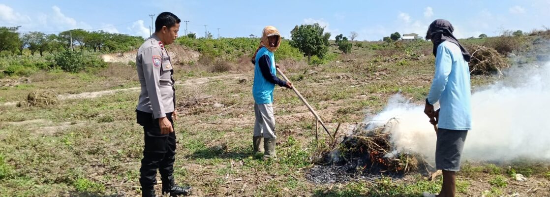 Pada kesempatan tersebut, Aipda M. Husnin menemui para petani yang sedang membersihkan lahan untuk persiapan penanaman jagung pola pertama. Ia juga mengajak warga agar memanfaatkan pekarangan rumah dengan menanam sayuran sebagai kontribusi nyata dalam mendukung program pemerintah menuju Indonesia Emas.