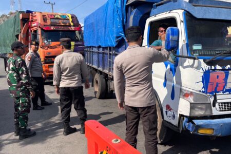 Personel Kpl Poto Tano Laksanakan Pemeriksaan Kendaraan Di Kawasan Pintu Keluar Masuk Pelabuhan