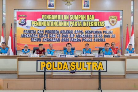 Polda Sultra Gelar Pengambilan Sumpah dan Penandatanganan Pakta Integritas Seleksi Pendidikan Pengembangan Polri TA 2026